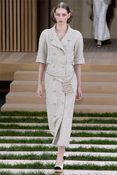 香奈儿自创立以来便试图以行动自如来解除人们对优雅着装的固有观念——沉重,复杂,繁琐。这一季中,我们在开场的日装部分中看到了圆肩,羊腿袖和阔腿裤的设计,以此解放不想被时装束缚的女性,而窄身长裙的设计增添女性气质,蝴蝶结、流苏为典雅造型带来一丝浪漫与甜蜜