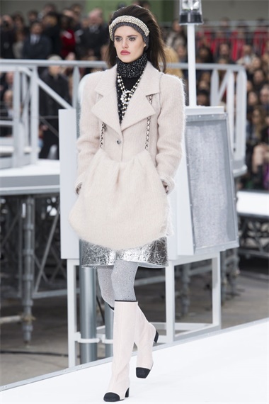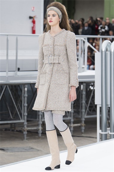 香奈儿(Chanel)于巴黎时装周发布2017秋冬系列高级成衣。本季位于巴黎大皇宫博物馆的香奈儿秀场化身火箭发射中心,印有品牌标志的火箭高达37米,矗立在秀场中央。结合未来感和品牌经典造型,香奈儿以银色、白色、灰色、夜空蓝及黑色为主,营造太空氛围,同时延续了斜纹软呢套装、方肩衣袖等品牌经典设计。模特们的发型设计源自上世纪60年代经典影片《太空英雌芭芭丽娜》女主角的造型,而银色靴子和刺绣领口的设计则与银河星空闪耀之景相呼应,完全融入。